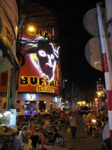 This was picture of one of local cafe in Saigon Vietnam namely Crazy Buffalo. From this corner street view, we can see the crowded situation of Vietnam Street. Telephone cables were crumpled all over the street. Most people were using motorbikes. There are a lot of vintage motorbike in here such as Honda 800.