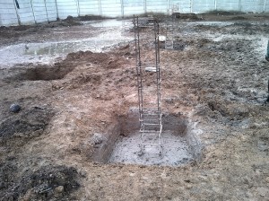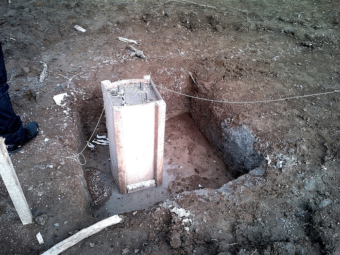 After several hours, foundation concrete was ready for the Iron Steel Wide Flange (WF).