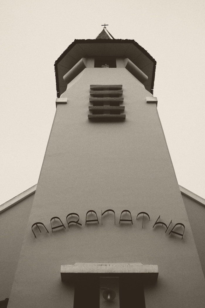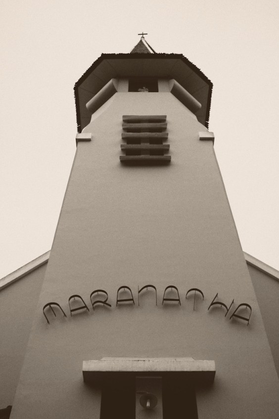 In my photo, I shoot my church’sΒ tower from below. My church name is GPIB Maranatha Bandung. This church’s building is quite vintage or retro. Is it a correct word to explain? Well, one of the interesting part in this church is its bell tower. In this picture, we can see the name of church, the bell tower, and the cross at top of the tower. Near and Far. π