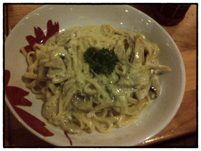 I had dinner at Q Smoke House Restaurant at Setiabudi One Building Jakarta. The place was quite cozy. I ordered Fettuccine Carbonara with mushroom and Ice Lychee Tea. Tasted delicious.