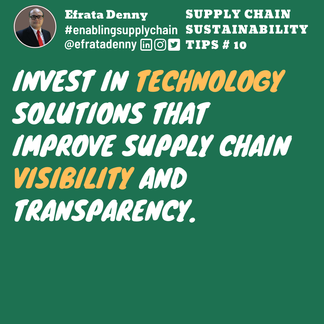 By investing in technology solutions that enhance visibility and transparency, businesses can achieve a more sustainable supply chain. Leveraging supply chain management systems, IoT devices, blockchain technology, data analytics, and digital platforms, companies can drive efficiency, make data-driven decisions, and foster collaboration. Let’s embrace innovation and technology for a greener future!