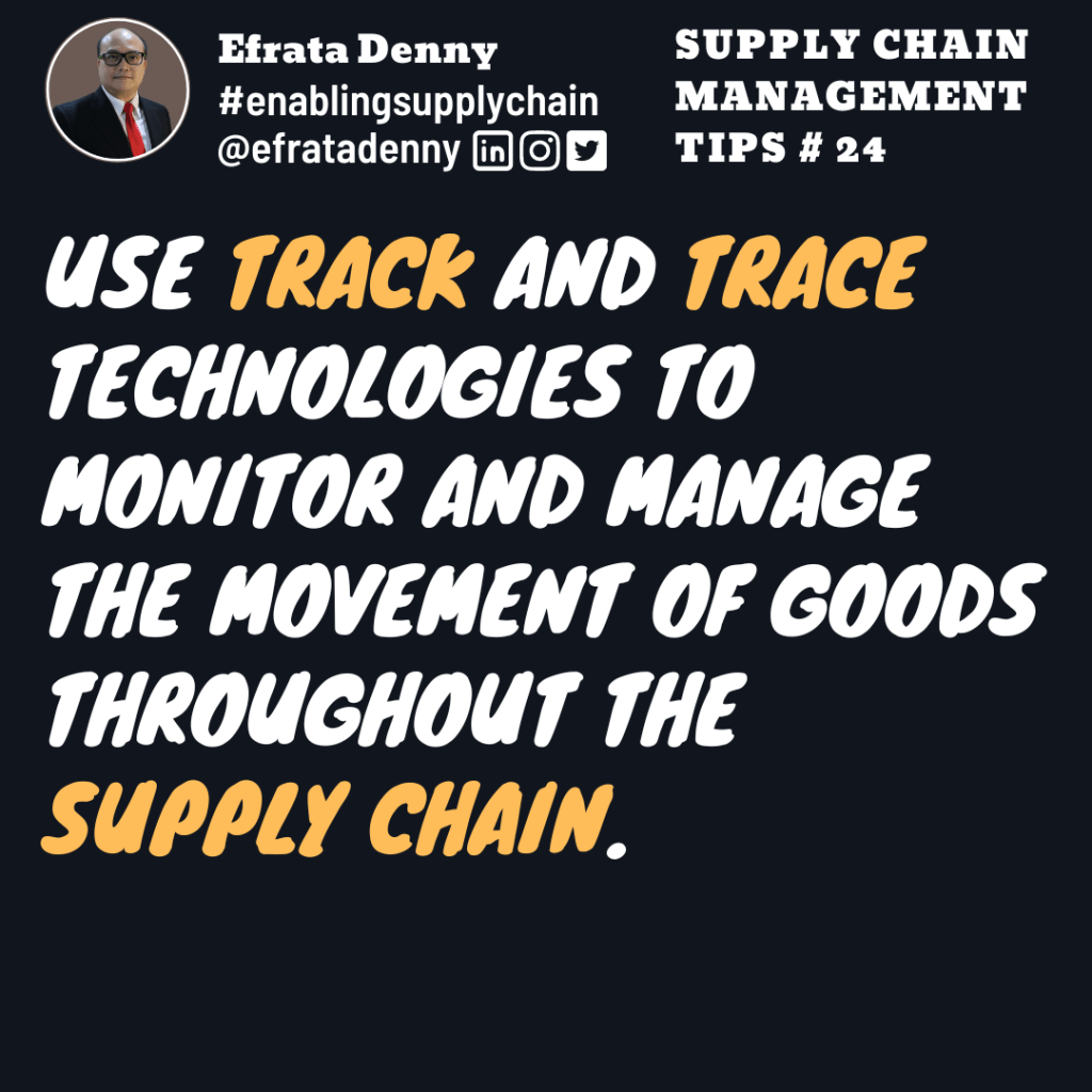 “Use track and trace technologies to monitor and manage the movement of goods throughout the supply chain.” – Efrata Denny