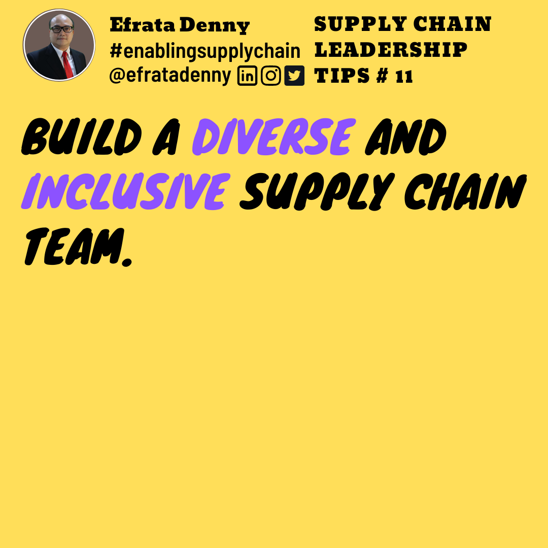 As a supply chain leader, lead by example. Demonstrate inclusive behaviors and champion diversity in your actions, decisions, and interactions with others. Your leadership sets the tone for the entire team.