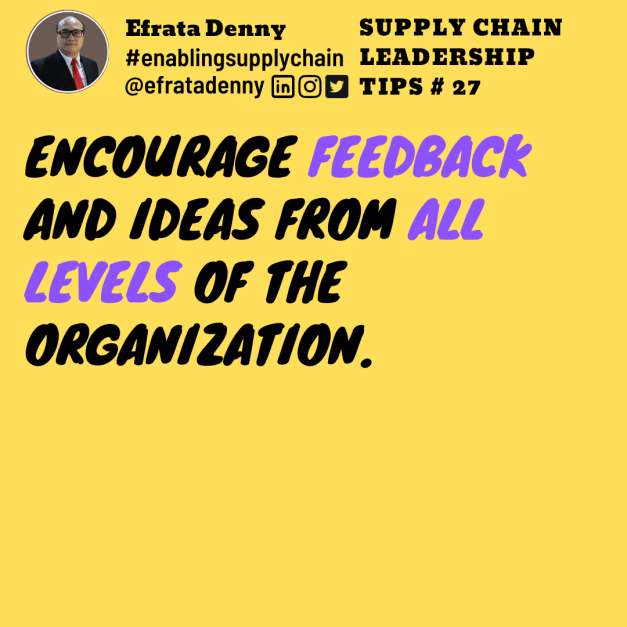 Encouraging feedback and ideas from all levels of your organization is a powerful strategy to drive innovation and continuous improvement in your supply chain. When you harness the collective creativity, knowledge, and expertise of your team, you unlock the potential for a stronger and more resilient supply chain. Foster a culture that empowers every individual to contribute their best ideas and watch your supply chain thrive in an ever-changing landscape.