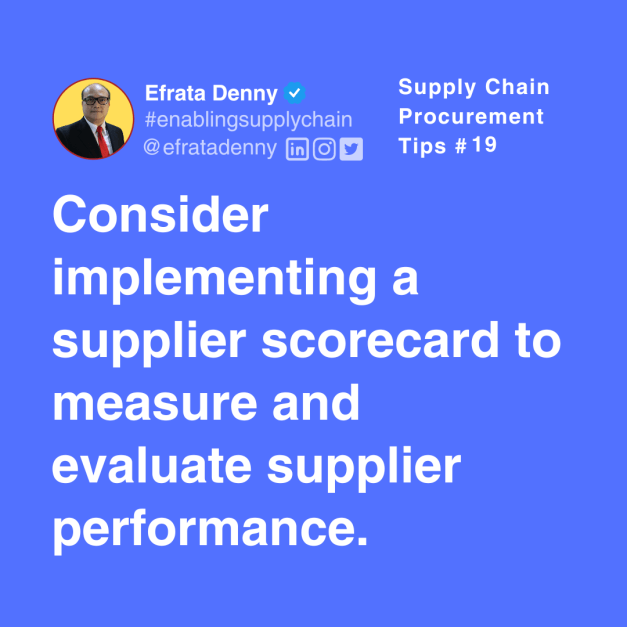 “Consider implementing a supplier scorecard to measure and evaluate supplier performance.” – Efrata Denny