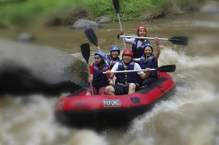 Rafting at Ayung River, Bali. Rafting is a nice activity. Very happy. The part I don’t like are before and after rafting. Before rafting, I have to walk downhill around 300 stair’s steps to Ayung river. After rafting, I have to walk uphill around 300 stair’s steps to meeting point. I prefer rafting that the river is next to car park. 🙂