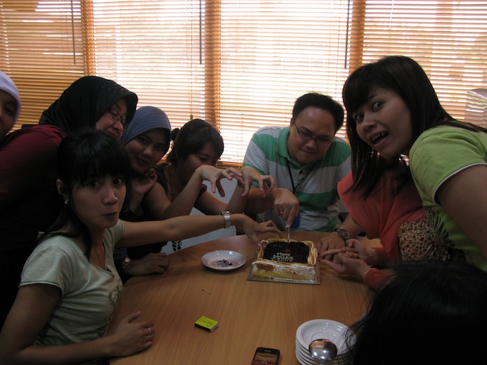 There was my birthday celebration at Arnott’s office. I took picture with ladies from marketing dept before I cut the cake. Gosh, I was the most handsome guy in this picture. No rival at all. 🙂