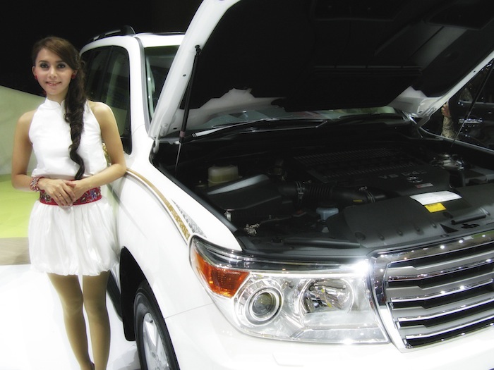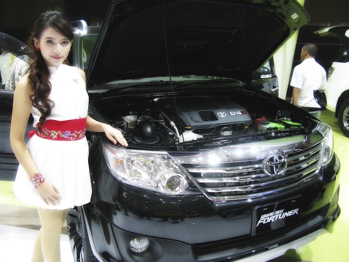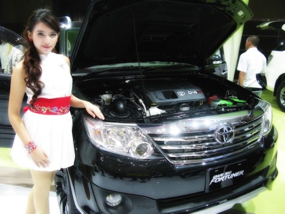 Toyota Booth at IIMS 2012 Jakarta. They have a circus acrobatic attraction on their booth. Toyota Prius Plug-In Hybrid Electric car is one of the interesting show. This car can use both petrol and electricity. Like an IPhone, they charged this car. They said Go Green. Therefore, their booth theme is Goodness for Tomorrow.